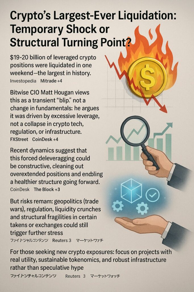 - Over $19-20 billion of leveraged crypto positions were liquidated in one weekend—the largest in history.