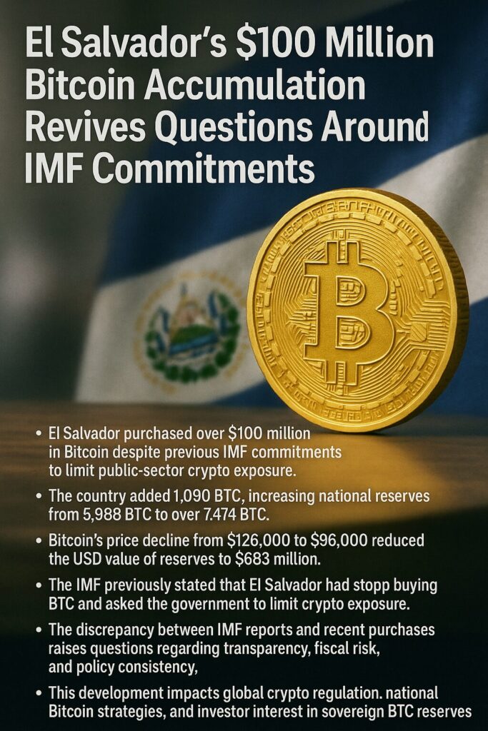 El Salvador, the first nation in the world to adopt Bitcoin as legal tender, has once again entered global headlines after purchasing more than $100 million worth of BTC, contradicting earlier commitments made to the International Monetary Fund (IMF). For international investors, crypto-native entrepreneurs, and analysts exploring new digital asset opportunities, the move raises important questions about national-level Bitcoin strategies, sovereign risk, and long-term market implications.