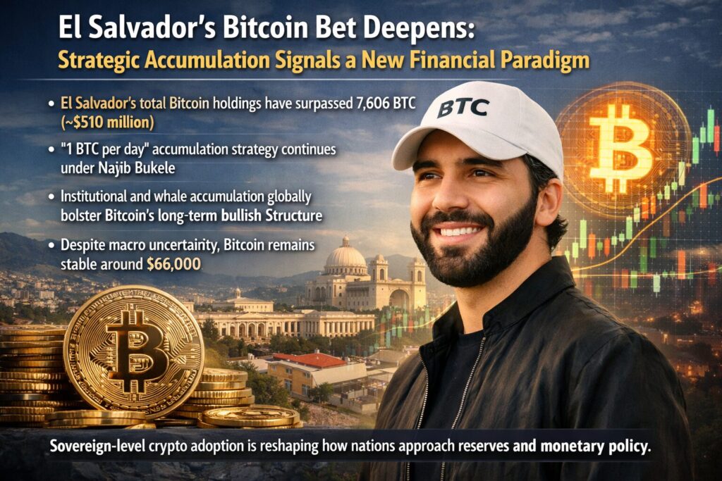 El Salvador has once again captured global attention as its national Bitcoin holdings surpassed 7,606 BTC, equivalent to approximately $510 million at current market prices. This milestone reflects not only a numerical increase but also a reaffirmation of the country’s commitment to Bitcoin as a strategic reserve asset.