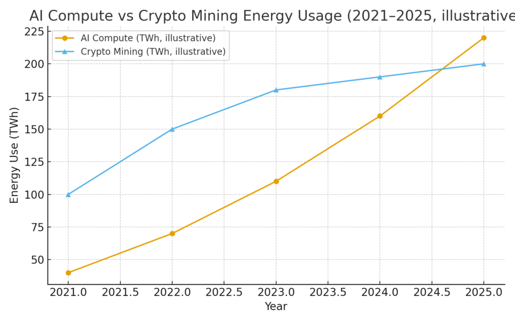 The logic: AI workloads often demand dense compute and low-latency power infrastructure, which miners already build for hashing. By reconfiguring or multiplexing between crypto and AI loads, operators can smooth revenue volatility tied to coin prices.