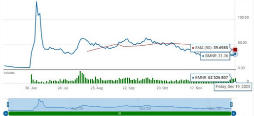 [BitMine share price decline from ATH to present]