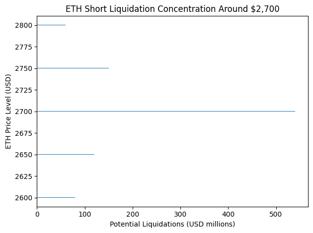 Data from derivatives analytics platforms shows an estimated $540 million worth of leveraged short positions clustered around $2,700. This zone accounts for roughly 82% of all active ETH short leverage, making it the most critical battleground in the current market structure.