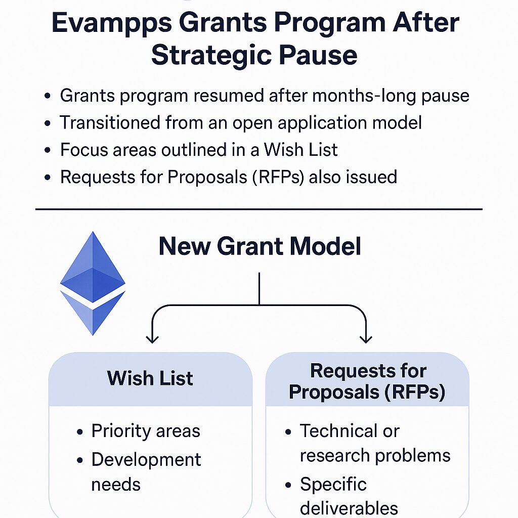 - The Ethereum Foundation (EF) has relaunched its grants initiative under the Ecosystem Support Program (ESP) following a pause in open applications.