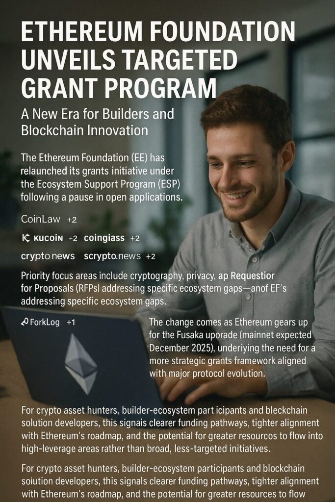 The Ethereum Foundation’s overhaul of its grants program under the Ecosystem Support Program marks a significant pivot: from broad, open-call funding to a strategic, targeted model featuring a Wishlist and RFPs. For builders, researchers and token-project developers looking for their next funding runway, this change means clearer pathways, higher expectations and potentially stronger ecosystem alignment. For investors and blockchain practitioners seeking new assets or protocols to support, this also offers a useful lens: projects aligned with cryptography, privacy, scalability, app-layer innovation or community growth—and which can articulate clear deliverables—are now more likely to receive institutional backing and succeed in the evolving Ethereum ecosystem.