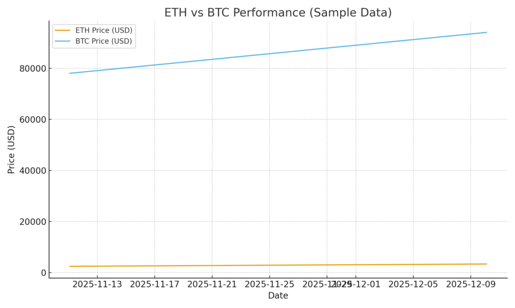 On December 9, Ethereum (ETH) surged nearly 8.4%, reaching close to $3,400, marking its strongest price level since mid-November and outperforming Bitcoin (BTC), which rose 4.5% to surpass $94,000. The broader market, represented by the CoinDesk 20 Index, increased about 6%, yet Ethereum clearly led the rally.