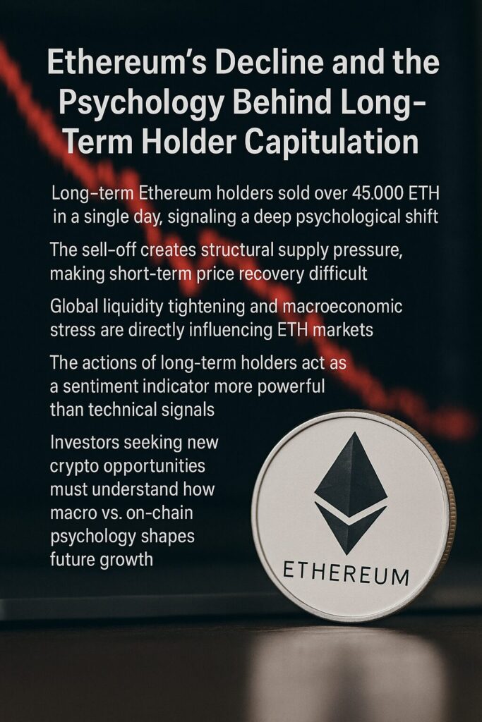 Recent Ethereum declines have revealed a striking behavioral shift among long-term holders—investors typically regarded as the most resilient and conviction-driven participants in the crypto ecosystem. The sale of over 45,000 ETH in a single day is not merely a technical event; it represents a critical psychological pivot.