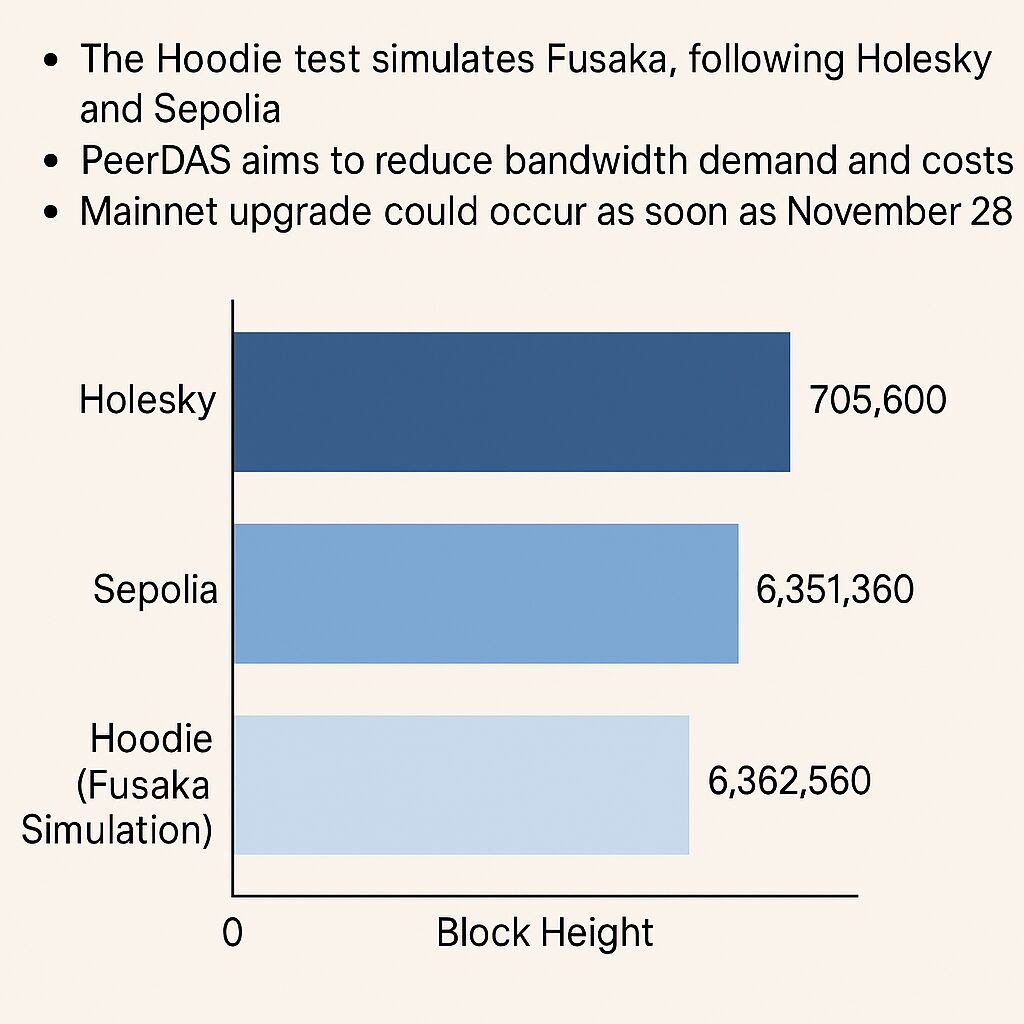 - Testnets: Holesky (activated October 1), Sepolia (October 14), Hoodi (October 28) — all have successfully run Fusaka-related code.