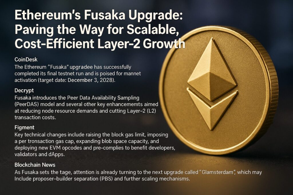 - The Ethereum “Fusaka” upgrade has successfully completed its final testnet run and is poised for mainnet activation (target date: December 3, 2025).