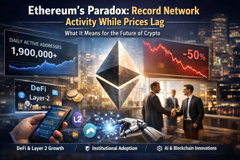 Network activity is reaching unprecedented levels, with millions of daily active addresses and rapidly expanding smart-contract interactions. Yet the price of ETH remains subdued due to capital outflows and broader market dynamics.