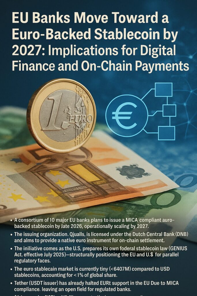 The EU’s coordinated move toward a fully regulated euro-backed stablecoin by 2026–2027 marks a potential turning point in global crypto finance. With MiCA setting strict standards and Tether exiting the euro market, European banks now have a unique opportunity to lead.