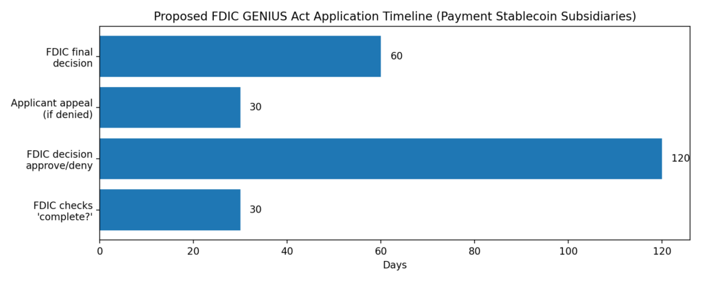 The FDIC’s proposed rule under the GENIUS Act is best understood as a “plumbing” milestone: it creates a procedural bridge between regulated banking and payment stablecoin issuance by requiring banks to operate through approved subsidiaries and by imposing explicit review timelines and an appeal mechanism.
