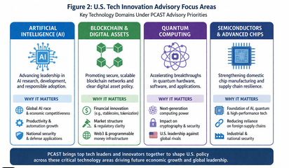 Insert Figure 2 Here: U.S. Tech Innovation Advisory Focus Areas (AI, Blockchain, Quantum, Semiconductors)