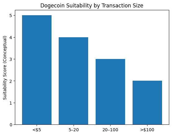 Dogecoin’s low fees make it suitable for small-value transactions, such as tipping, digital content, or local services under $5.