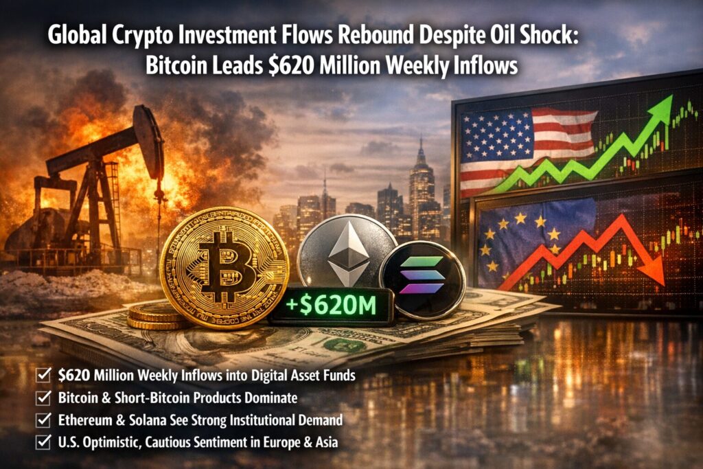 Global Crypto Investment Flows Rebound Despite Oil Shock: Bitcoin Leads $620 Million Weekly Inflows
