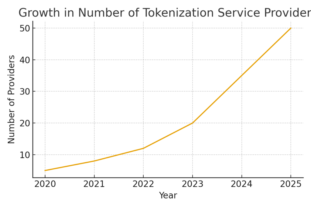 The number of tokenization platforms is estimated to have grown sharply over the last five years.