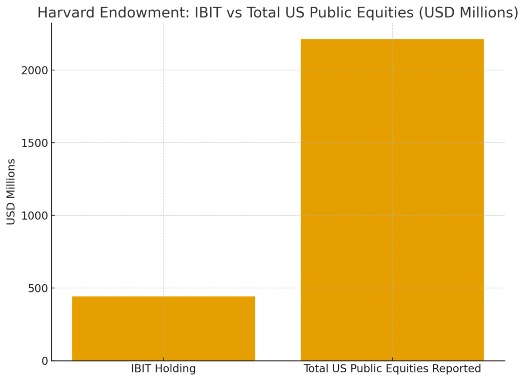 Harvard’s public-equity exposure is small relative to private markets, so Bitcoin taking a fifth of that slice shows its growing strategic importance.(Insert Image Here)