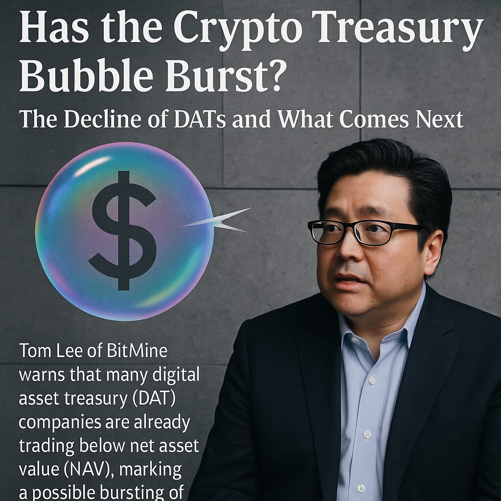 Tom Lee, the new chairman of BitMine, recently asserted in a Fortune podcast that the bubble surrounding digital asset treasury companies may already have burst. He observed that many companies holding significant crypto reserves are now valued in the public markets below the net asset value (NAV) of their crypto holdings. Such a development would shatter one of the core tenets enabling the treasury model: that equity markets would afford a premium to such firms, enabling them to issue shares or debt at attractive rates to fund further accumulation.