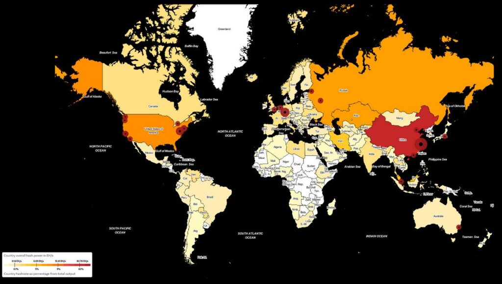 Mining equipment, capital-intensive and globally mobile, began relocating toward jurisdictions with clearer legal frameworks and more favorable energy economics. North America, Northern Europe, Latin America, and parts of Central Asia rapidly absorbed this displaced hashrate.