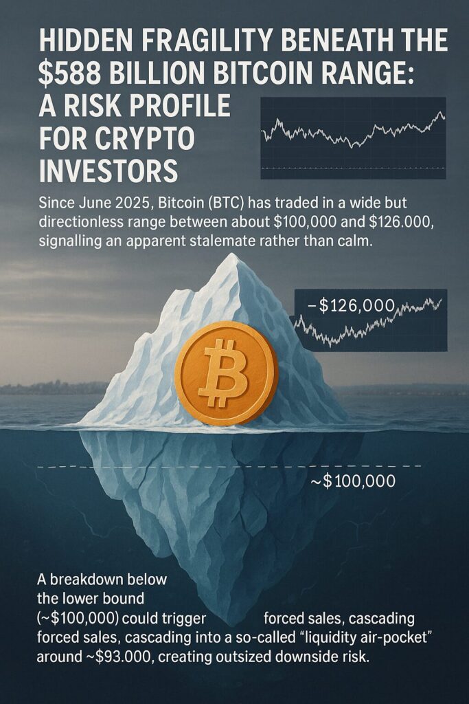 - Since June 2025, Bitcoin (BTC) has traded in a wide but directionless range between about $100,000 and $126,000, signalling an apparent stalemate rather than calm.