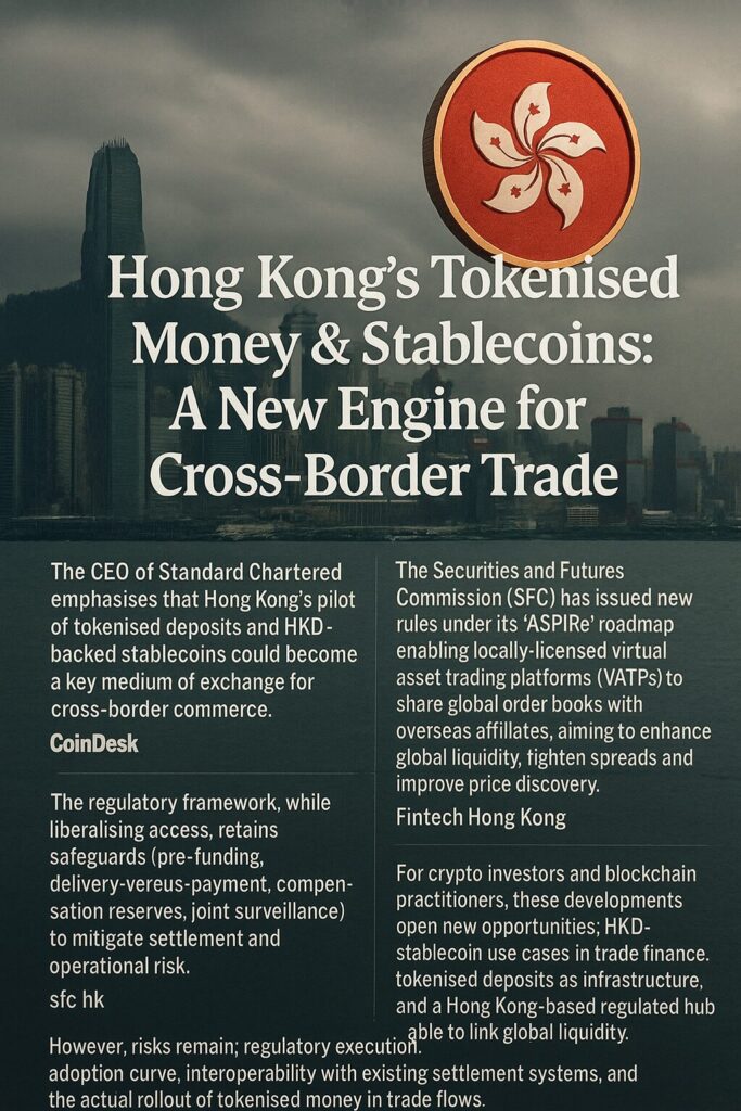 - For crypto investors and blockchain practitioners, these developments open new opportunities: HKD-stablecoin use cases in trade finance, tokenised deposits as infrastructure, and a Hong Kong-based regulated hub able to link global liquidity.