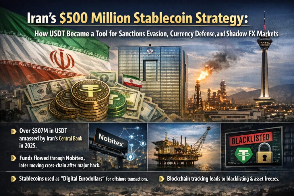 In January 2026, blockchain intelligence firm Elliptic published findings that fundamentally challenge traditional assumptions about central banking and digital assets. According to its analysis, the Central Bank of Iran accumulated at least $507 million worth of USDT, the U.S. dollar–pegged stablecoin issued by Tether, during 2025.