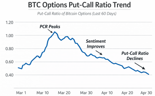 A high PCR typically indicates bearish positioning (more puts than calls). The recent decline suggests that excessive pessimism is unwinding.