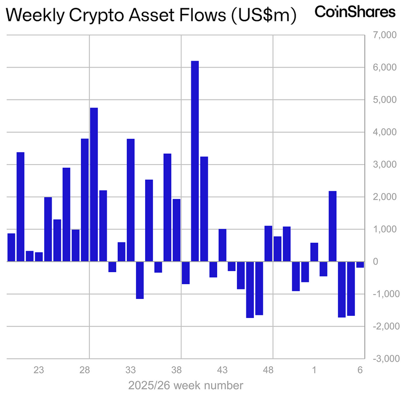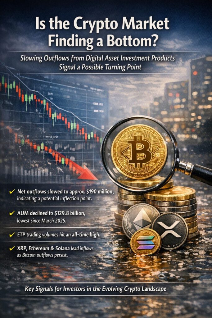 - Net outflows from digital asset investment products slowed sharply to approximately $190 million, suggesting a potential inflection point in investor sentiment.