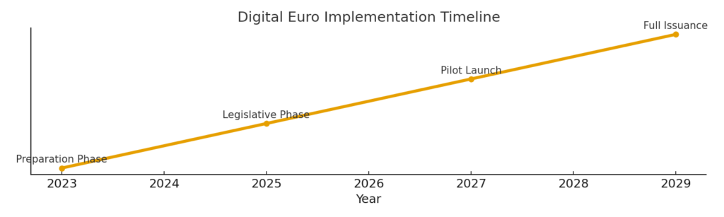 - The European Central Bank (ECB) has moved its digital euro project from the initial “preparation phase” into the next phase, targeting a pilot launch around mid-2027 and a full issuance by 2029, subject to legislation.