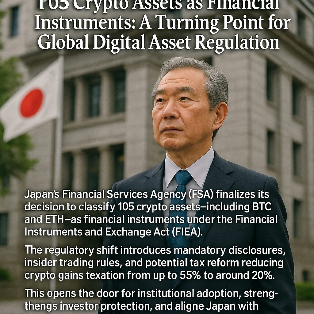Japan’s Bold Reclassification of 105 Crypto Assets as Financial Instruments: A Turning Point for Global Digital Asset Regulation