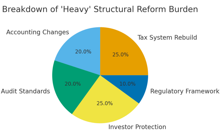 • The reform requires deep structural changes across accounting, taxation, investor protection, and market infrastructure.
