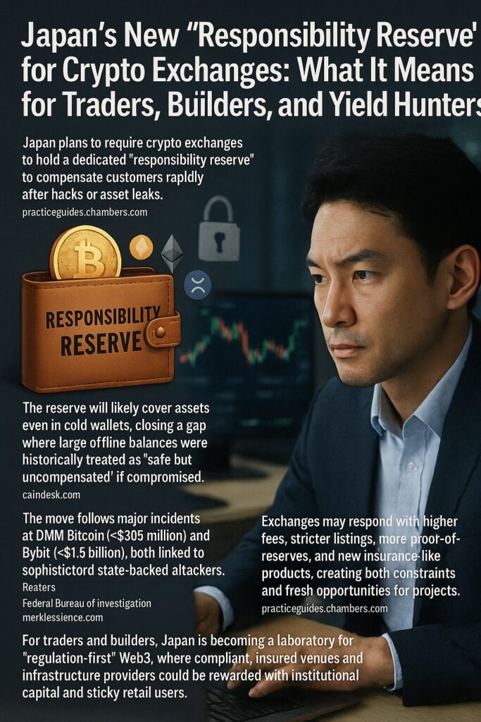 Japan’s planned responsibility reserve is more than another compliance box. It marks a philosophical shift in how regulators think about crypto exchanges: