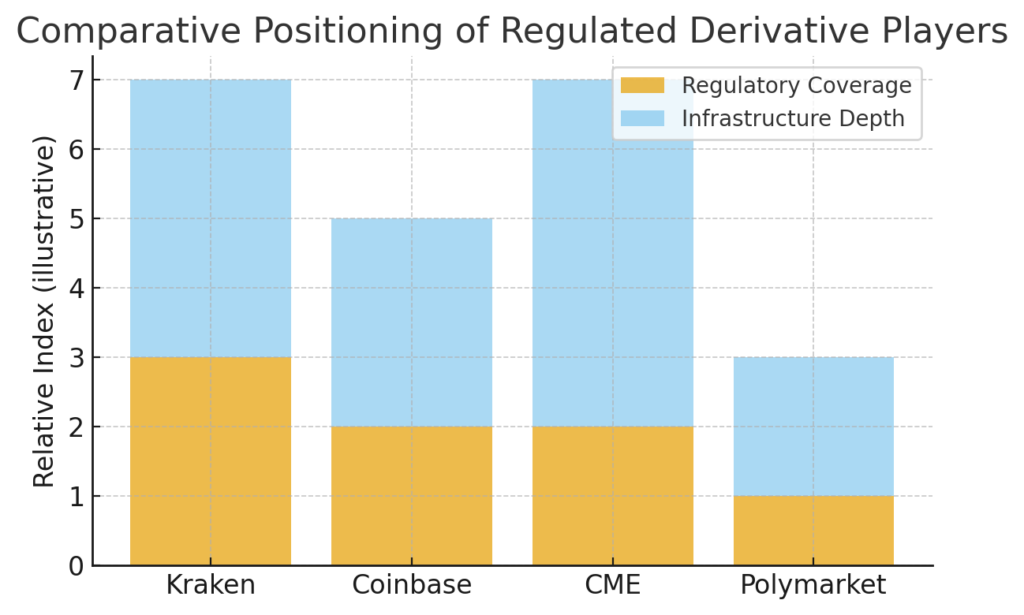 Facing competition from Coinbase, CME, Polymarket, and other regulated venues, Kraken needs product differentiation (e.g. novel derivatives, better UX, cross-product integration) to win volume.