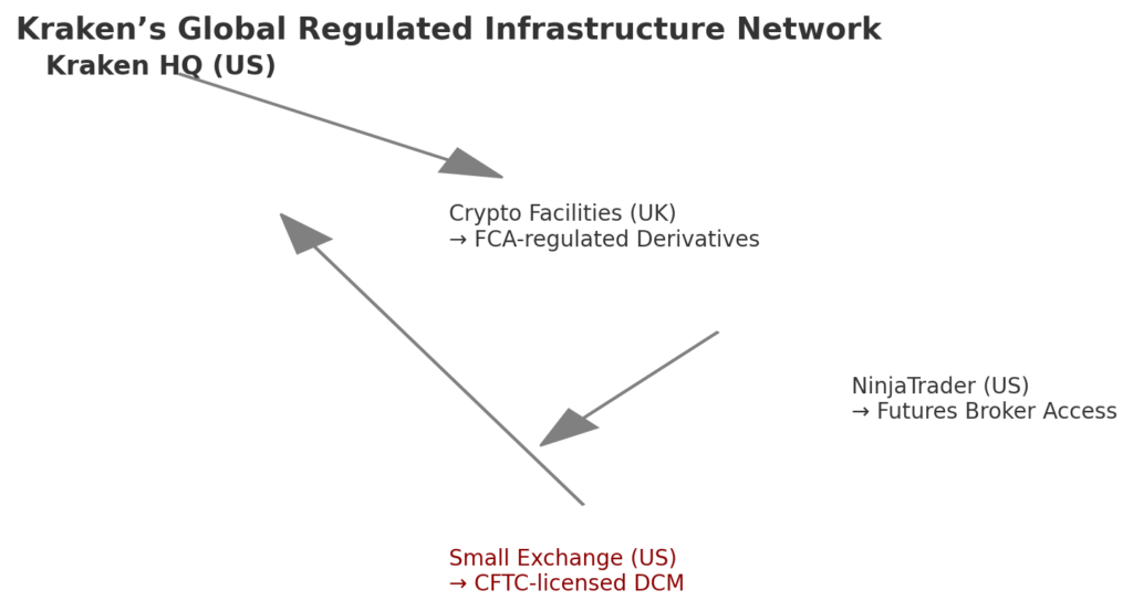- It continues Kraken’s global infrastructure build: after Crypto Facilities (UK) and NinjaTrader (U.S.), this completes the trio of major regulated venues.