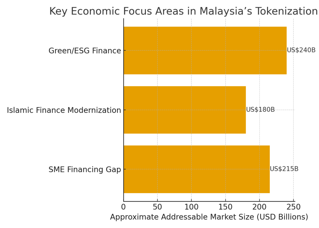 SMEs in Malaysia face a financing gap estimated at around US $21.5 billion (≈RM 101 billion). BNM envisages tokenising invoice receivables or other supply-chain assets so that smaller companies can unlock liquidity by converting future payments from large anchor buyers into digital tokens, which can then be used as collateral or traded.