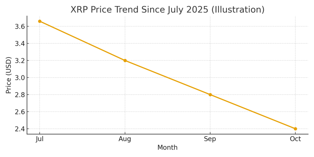 XRP’s price slump—currently about 34 % below its July 2025 high of US $3.66—underscores the downside risk environment. From a technical perspective, traders are closely watching: