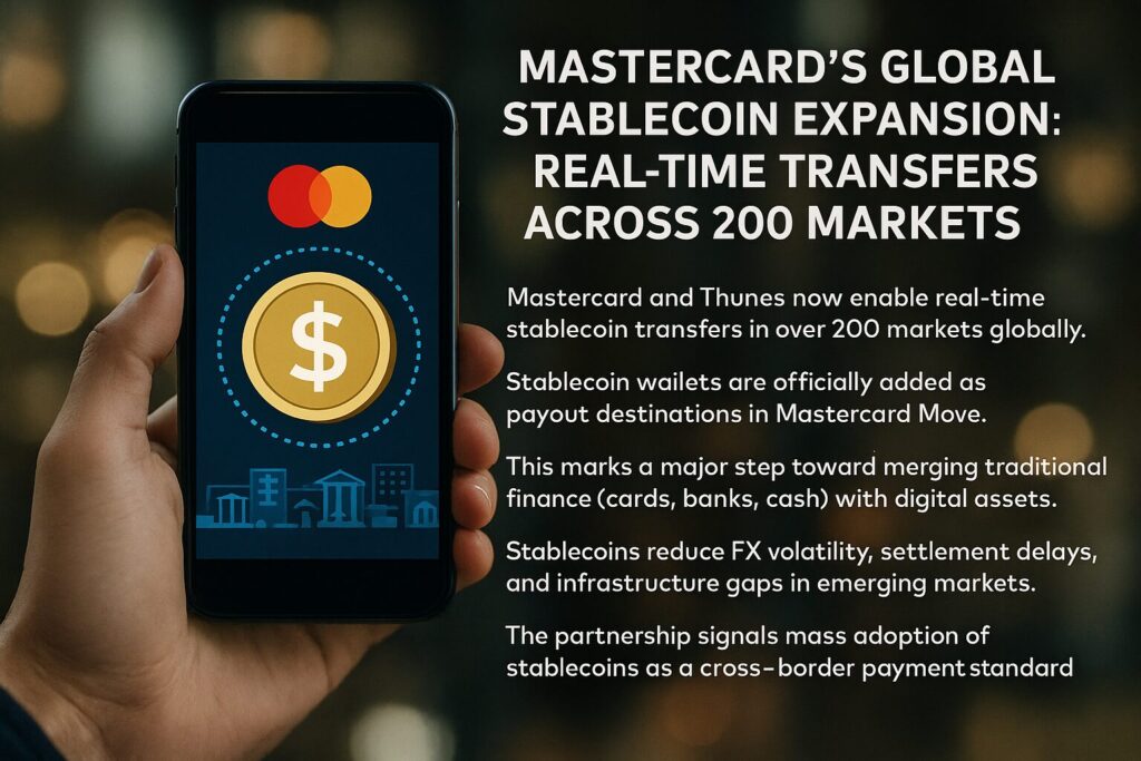 The world of cross-border payments is undergoing its most dramatic transformation in decades. On November 13, 2025, Mastercard announced a strategic expansion with Thunes, enabling stablecoin-based real-time transfers in more than 200 global markets. This upgrade integrates stablecoin wallets directly into the company’s payment ecosystem, placing digital assets alongside traditional payout channels like cards, bank accounts, and cash.