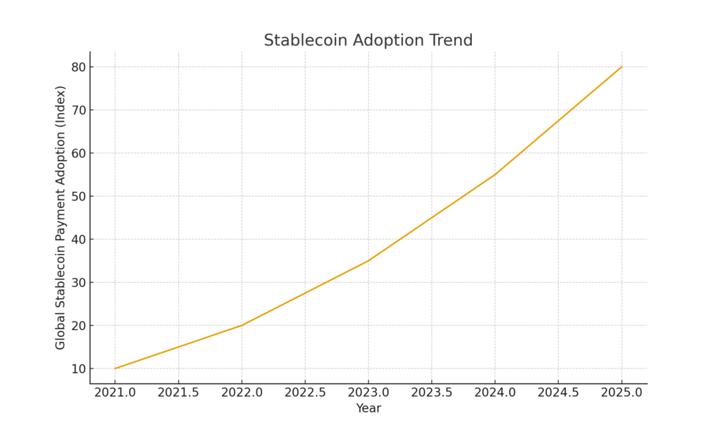7. Chart: Global Stablecoin Adoption Trend (2021–2025)