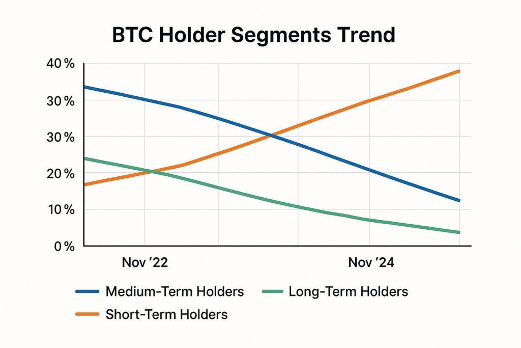 • 3–5 year holders (medium-term) → are selling aggressively and driving recent declines