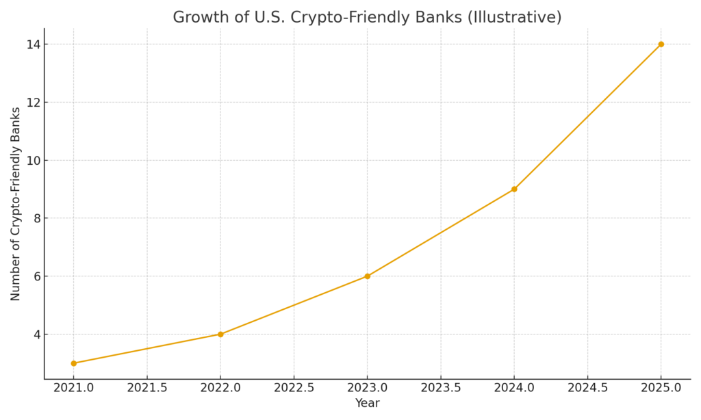 Below is an illustrative chart showing the growth in the number of U.S. crypto-friendly banks: