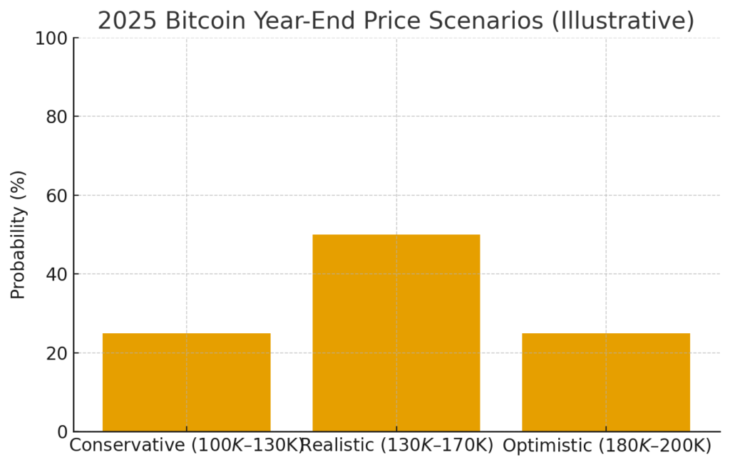 - The range of 2025 year-end forecasts is wide, but many cluster around $130K–$170K, with bullish outliers stretching toward $200K+