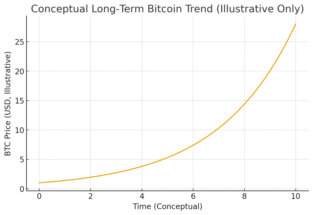 (This chart illustrates a conceptual long-term Bitcoin trend for readers.)