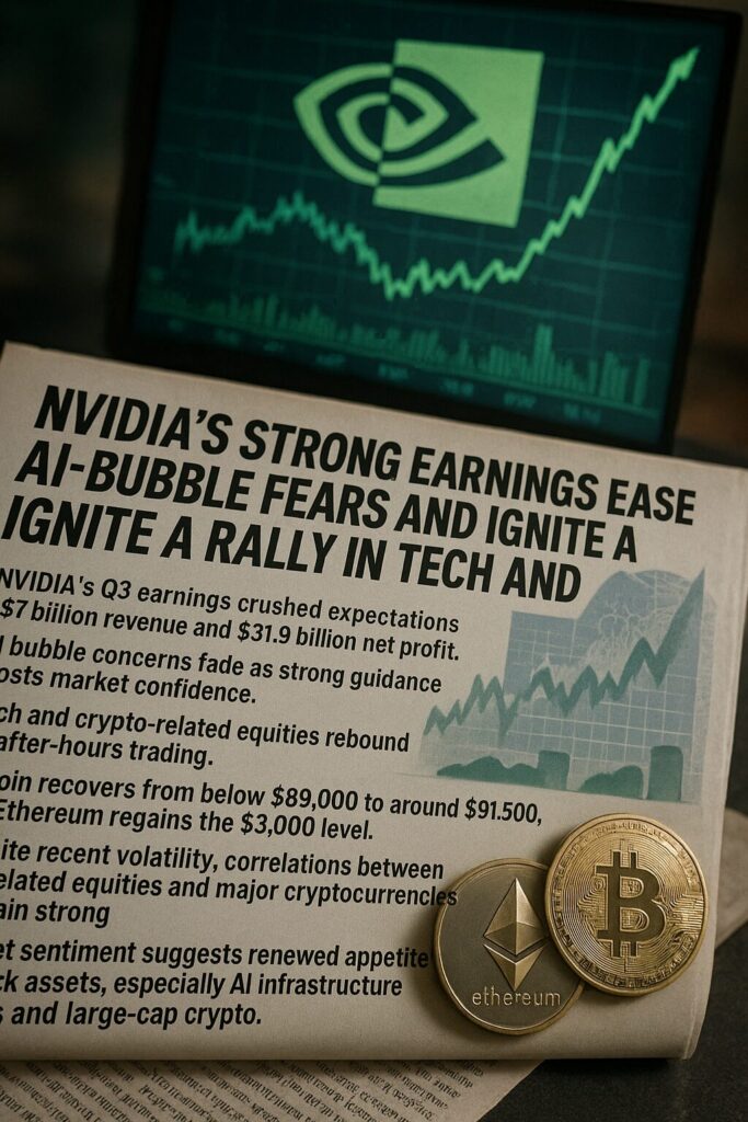 NVIDIA’s Strong Earnings Ease AI-Bubble Fears and Ignite a Rally in Tech and Crypto Markets