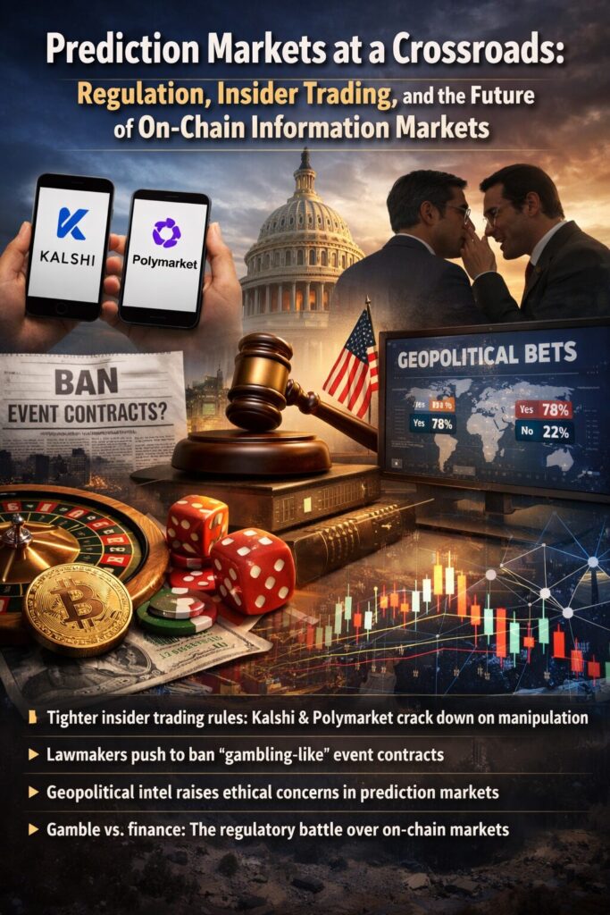 Prediction markets have rapidly evolved from niche experimental platforms into a significant component of the broader crypto-financial ecosystem. Platforms such as Kalshi and Polymarket allow users to trade on the probability of real-world events—ranging from elections and economic indicators to geopolitical conflicts—by buying and selling event-based contracts.