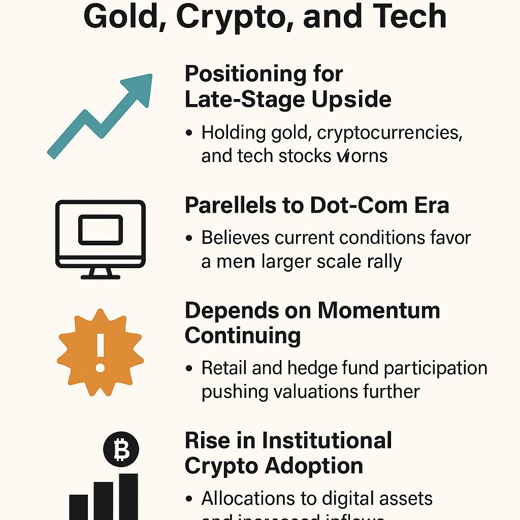 Paul Tudor Jones’ bold stance — holding gold, crypto, and tech stocks through 2025 — is provocative but reflects a growing intuition among macro investors: this cycle could reach extremes. But that does not mean it cannot continue further.
