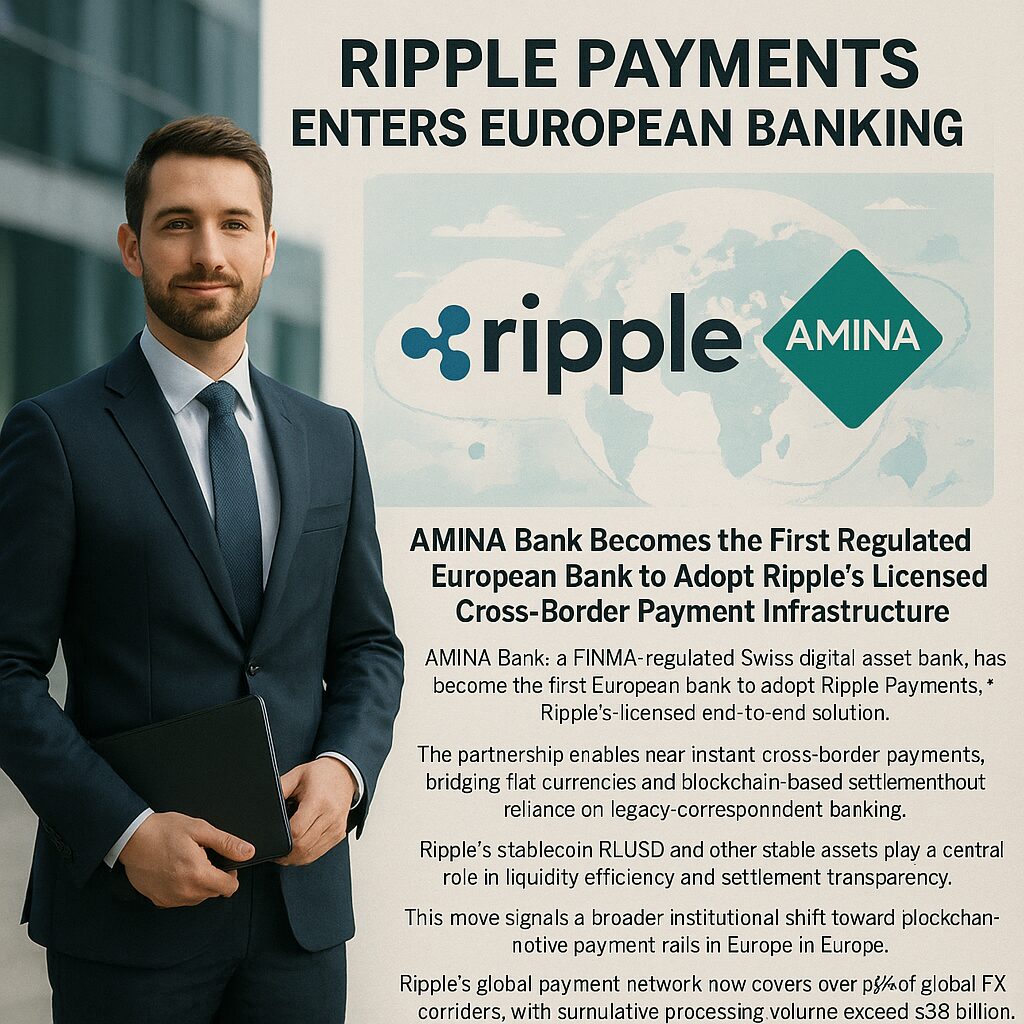 By combining Ripple’s licensed payment technology with AMINA’s regulatory credibility, this collaboration demonstrates how blockchain can function as a core financial rail, not merely an auxiliary system.