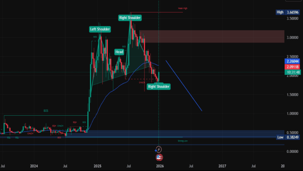 A deeper retracement below that zone could open the door to the $2.20 area, where previous consolidation and the rising medium-term EMA may provide support. Only a sustained break below that level would meaningfully weaken the bullish structure.