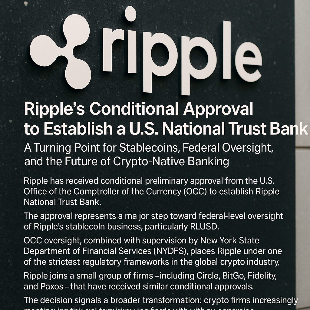 Ripple’s conditional approval to establish a U.S. national trust bank is not merely a corporate milestone—it is a structural turning point for the digital asset industry.