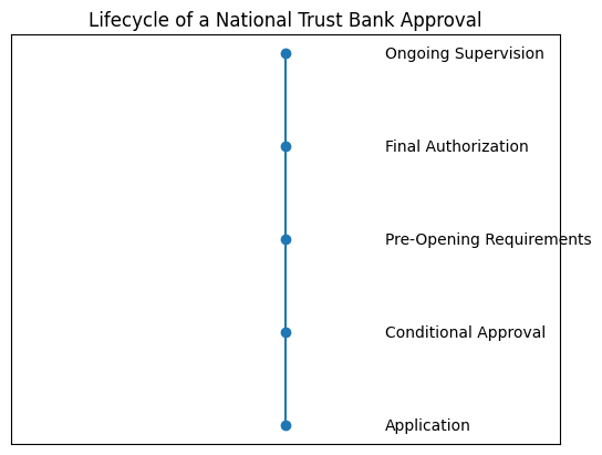 Description: A flow diagram showing stages from application → conditional approval → pre-opening requirements → final authorization → ongoing supervision.