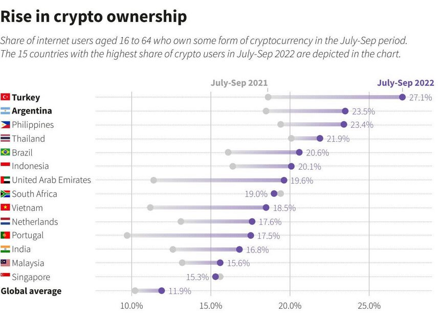 Reports suggest that over 50% of Turkish adults now own or have used cryptocurrency, placing Turkey among the highest crypto adoption rates worldwide.