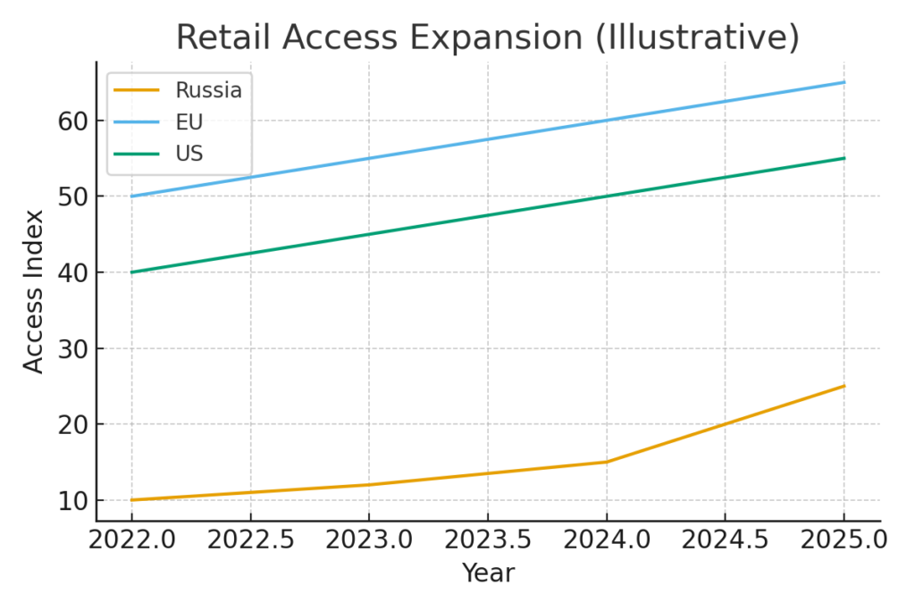This graph visualizes the growth trajectory of retail crypto access under Russia’s new policy direction.